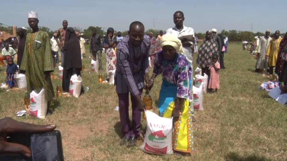 Ce samedi 24 octobre 2020, au stade Nungu de Fada N’Gourma, ils étaient au total 200 ménages déplacés internes dans la ville de Fada N’Gourma à bénéficier des fruits de ce geste de la diaspora Burkinabè Dénommé ‘’projet humanitaire : Donner de l’espoir’’. Appelé ‘’panier alimentaire’’ par les donateurs, le kit se compose uniquement de vivres et a une valeur estimée à 20.000 FCFA.