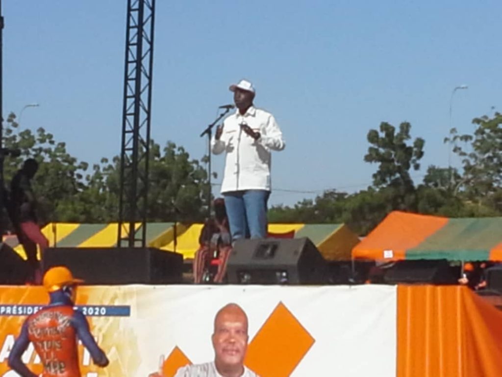 «Roch, Kosyam», «Un coup KO» et «Un coup sûr» ! C’est à travers ces slogans que le président-sortant, Roch Marc Christian Kaboré, a été accueilli au stade régional de Kaya, le mercredi 11 novembre 2020, lors de son 6e meeting régional. Tour à tour, des militants et sympathisants du Mouvement du peuple pour le progrès (MPP) de la région du Centre-Nord lui ont réitéré leur engagement, le soir du 22 novembre prochain. «Nous allons mener une campagne de porte-à-porte pour éviter que les populations se trompent, le jour du scrutin présidentiel. Soyez rassuré que la victoire est déjà acquise», a lancé le directeur provincial de campagne du MPP du Sanmatenga, Béchir Ismaël Ouédraogo. Pour le représentant de l’Alliance des partis de la mouvance présidentielle (APMP), Adama Kanazoé, par ailleurs président de l’Alliance des jeunes pour l’indépendance et la République (AJIR), les 70 partis de l’APMP sont engagés dans l’opération «un coup KO» comme en 2015. M. Kanazoé a mis l’occasion à profit pour dresser le bilan du premier mandat de Roch Kaboré. Dans le domaine des infrastructures, il a noté la construction du barrage de Samandéni, le bitumage de 1731 km de route et la réalisation de 2323 km de pistes rurales. Quant au plan sanitaire, M. Kanazoé a retenu, entre autres, la gratuité de soins des femmes enceintes et enfants de moins de cinq ans, l’initiative «une commune, une ambulance», l’assurance maladie universelle et la construction de centres de santé. Le représentant du Dima de Boussouma, le chef de canton de Louda, le Naaba Tissé, a indiqué que le Dima de Boussouma ne peut pas accompagner un candidat aux élections sans qu’il ne remporte la victoire. Pour le directeur national de campagne du MPP, Simon Compaoré, cette mobilisation «exceptionnelle» est la première du genre depuis leur tournée de campagne dans les cinq premières régions. «Or, celui qui a une mobilisation a la chefferie», a-t-il déclaré. Dans son intervention, le candidat Roch Kaboré a fait savoir que la sécurité et le retour des PDI dans leurs villages d’origine seront la priorité de ses premières actions, toutefois s’il est réélu. Il a aussi invité les autorités coutumières et administratives à lutter contre la stigmatisation et le repli identitaire. «Je suis aussi prêt à travailler avec les exilés politiques» pour une réconciliation nationale a laissé entendre le président candidat à sa propre succession.