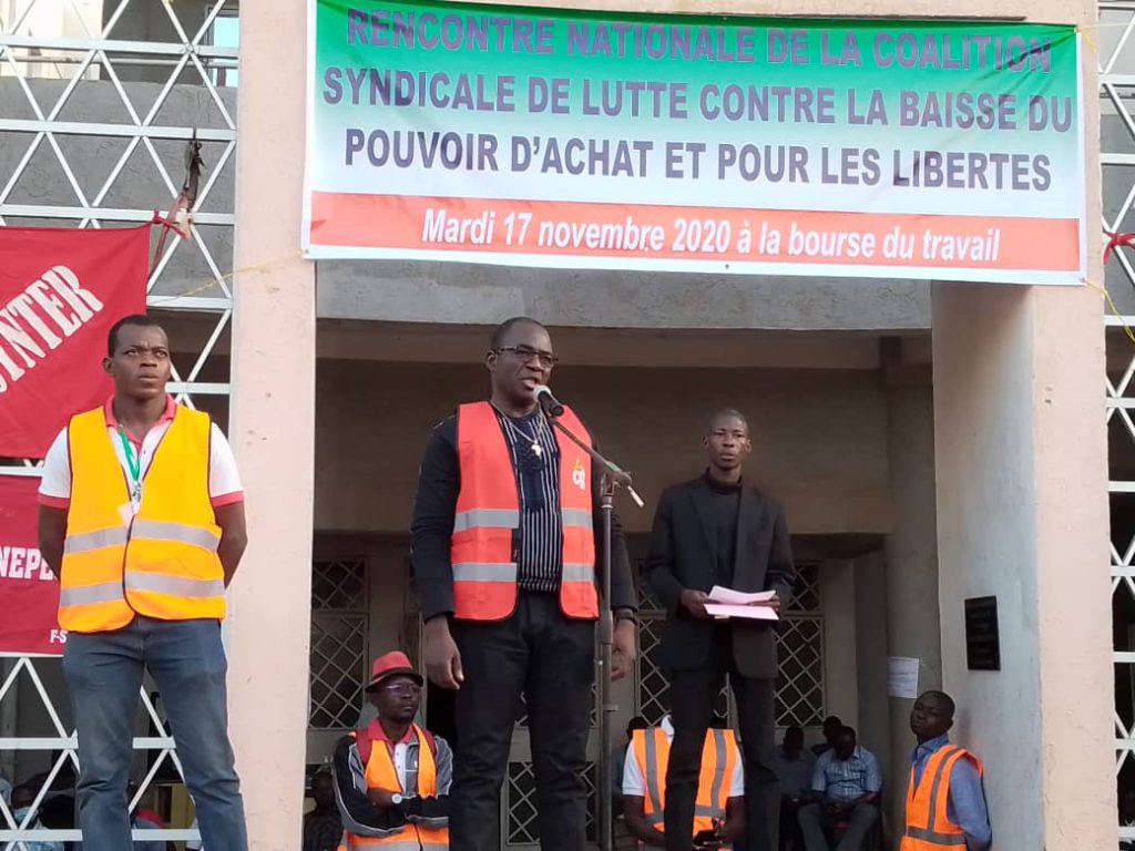 La coalition syndicale contre la baisse du pouvoir d’achat et pour les libertés est montée au créneau. Le mardi 17 novembre 2020, à la fin de sa première rencontre nationale, la coalition a exigé l’unité des syndicalistes afin que leur plateforme revendicative soit prise en compte. Une revendication qui touche pratiquement tous les domaines. Elle s’insurge contre l’interdiction de la marche du 17 mars 2020 en prétextant de l’apparition de la Covid-19, du licenciement de trois travailleurs dans les boulangeries, les suspensions des salaires de plus de sept cents (700) agents publics notamment dans l’éducation, des coupures de salaires, des affectations arbitraires de responsables et dirigeants des syndicats.