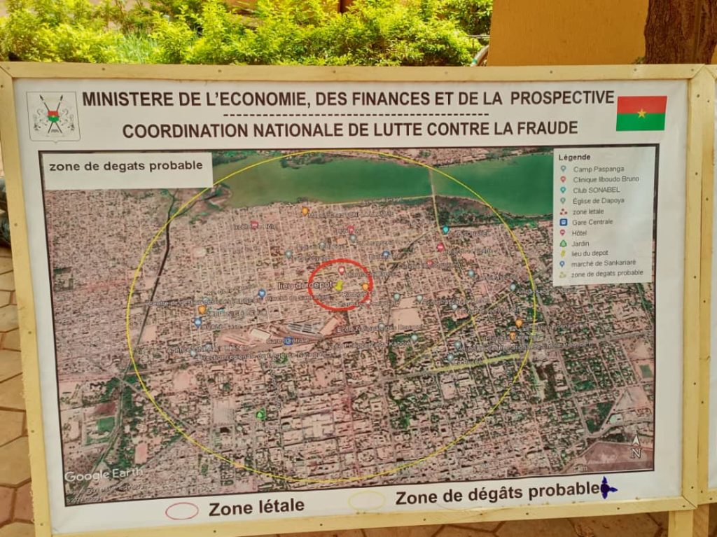 Au total « 1885 détonateurs électriques et pyrotechniques, 4353 dynamites, 66 rouleaux de cordeaux détonants, 15 sacs de 80 kg chacun de nitrate d’ammonium, 01 sac de 25 kilogrammes d’hydroxyde de sodium, 25 sacs de charbon actif et 698 cartons d’amphétamines, de produits pharmaceutiques, d’équipements et de consommables biomédicaux de contrebande » entreposés dans des lieux non loin du marché sankaryaré ont été saisis.