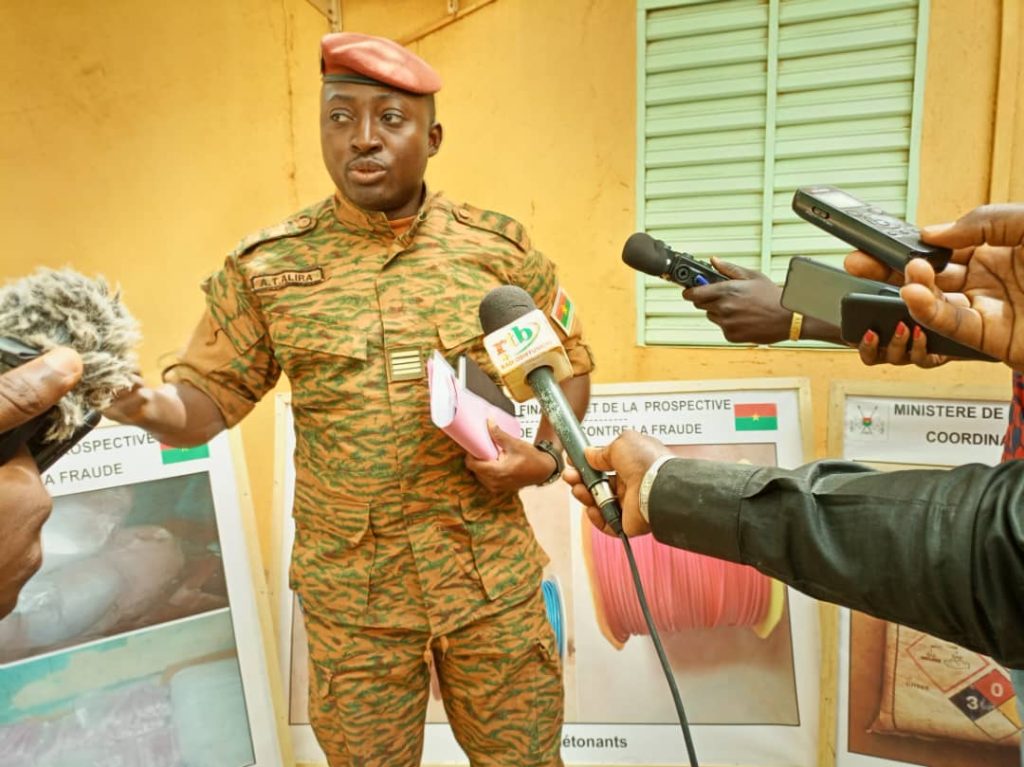 Au total « 1885 détonateurs électriques et pyrotechniques, 4353 dynamites, 66 rouleaux de cordeaux détonants, 15 sacs de 80 kg chacun de nitrate d’ammonium, 01 sac de 25 kilogrammes d’hydroxyde de sodium, 25 sacs de charbon actif et 698 cartons d’amphétamines, de produits pharmaceutiques, d’équipements et de consommables biomédicaux de contrebande » entreposés dans des lieux non loin du marché sankaryaré ont été saisis.