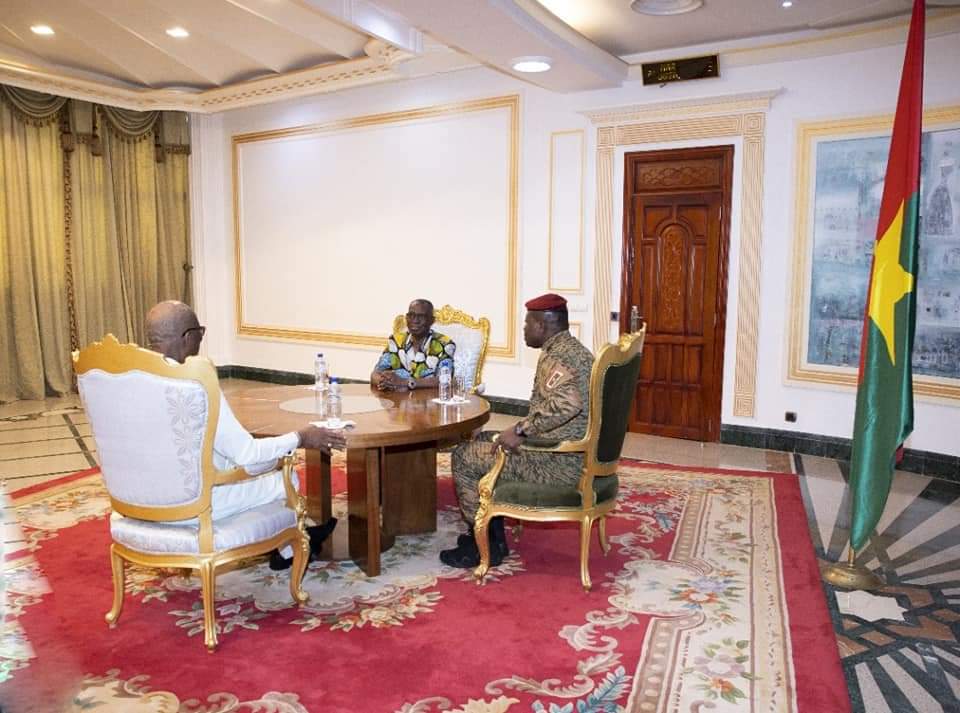 Le Président du Faso, le Lieutenant-colonel Paul-Henri Sandaogo DAMIBA, a reçu en audience, ce mardi 21 juin les anciens Chefs d’Etat, Roch Marc Christian KABORE et Jean-Baptiste OUEDRAOGO.Le Lieutenant-colonel Paul-Henri Sandaogo DAMIBA et ses deux prédécesseurs à la tête de l’État burkinabè ont échangé sur les questions sécuritaires, la conduite de la Transition et bien d’autres sujets d’intérêt national.
