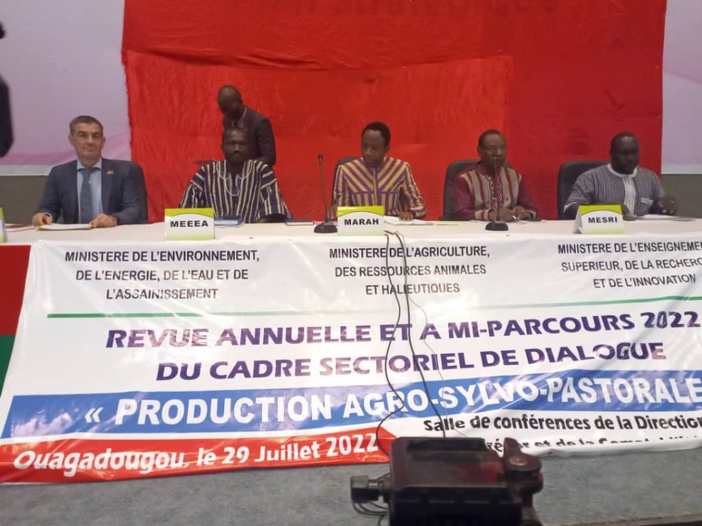 Le ministre de l’agriculture des ressources animales et halieutiques a procédé ce vendredi 29 juillet 2022 au lancement des travaux de la session couplée portant sur la revue annuelle 2021 et à mi-parcours 2022 du cadre sectoriel de dialogue » production agro-sylvo-pastorale. Cette session vise à examiner et valider les rapports sectoriels de performance 2021 et à mi-parcours 2022 de mise en œuvre des politiques nationales de développement du plan d’action de la transition.