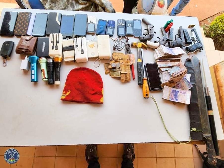 Les enquêteurs, grâce à la prompte collaboration des citoyens, ont réussi à appréhender ces malfrats très redoutables, au moment même où ils étaient revenus dans la périphérie de la ville de Bobo-Dioulasso pour jouir des produits de leurs forfaits. Des armes à feu, des armes blanches, une moto, des téléphones portables et du numéraire ont été saisis entre leurs mains.