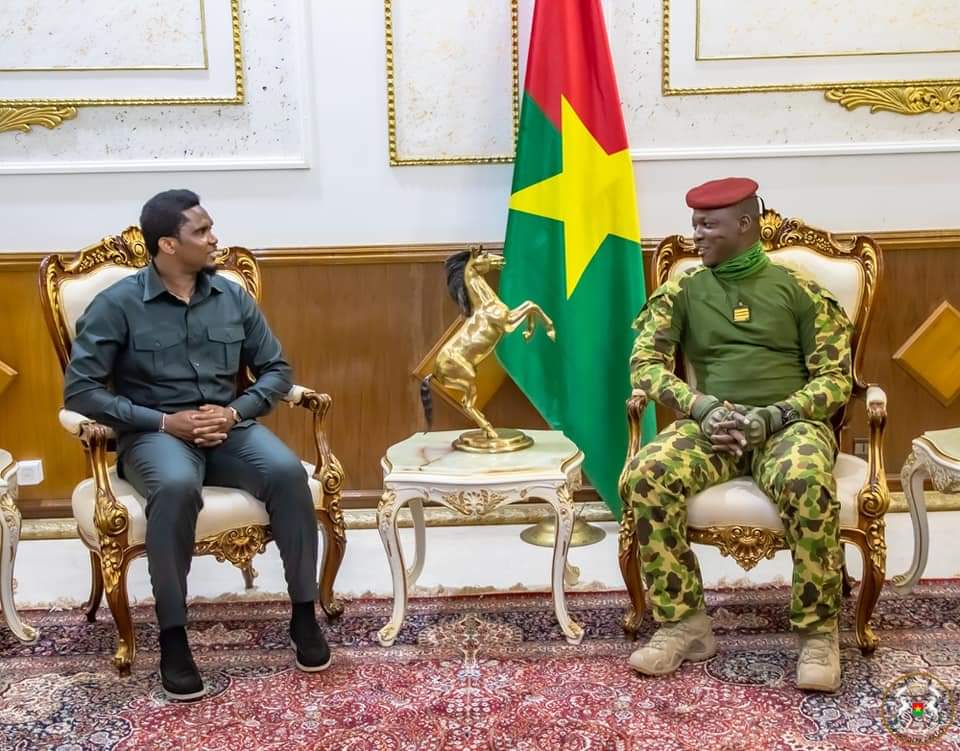Le Président de la Transition, Chef de l’Etat, le Capitaine Ibrahim TRAORE a accordé ce lundi 29 mai 2023, une audience au président de la Fédération camerounaise de football (Fecafoot), Samuel Eto’o. Présent à Ouagadougou dans le cadre de la finale de la coupe du Faso, Samuel Eto’o a échangé avec le Chef de l’Etat autour de la promotion du football.