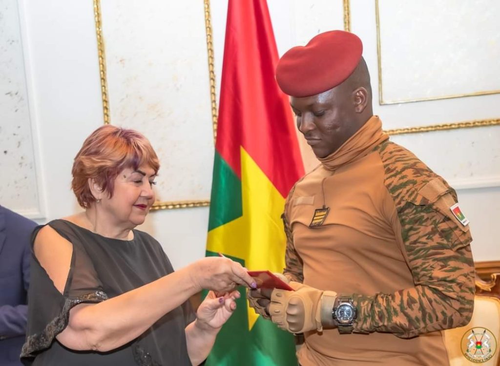 Cette décoration, qui salue la détermination et le courage du Capitaine Ibrahim Traoré dans son combat, a été faite lors d’une audience accordée à une délégation de l’Alliance des BRICS conduite par Mme Larisa Zelentsova. Selon elle, il a été question au cours de cette audience d’aborder la problématique de la coopération et le soutien des pays du BRICS au Burkina Faso.