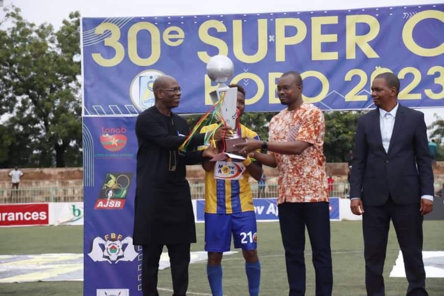 Le Ministre des Sports a également adressé ses félicitations à l’AJSB et adressé ses remerciements aux deux clubs qui ont mouillé le maillot. Il a rendu hommage aux Forces de Défense et de Sécurité, aux Volontaires pour la Défense de la Patrie grâce à qui cette manifestation a pu se tenir.