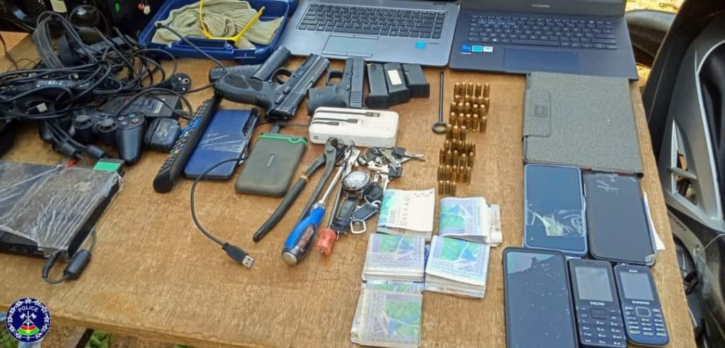 L’arrestation de ce gang a permis de récupérer entre autres, deux pistolets automatiques, des munitions, des motos et des ordinateurs.