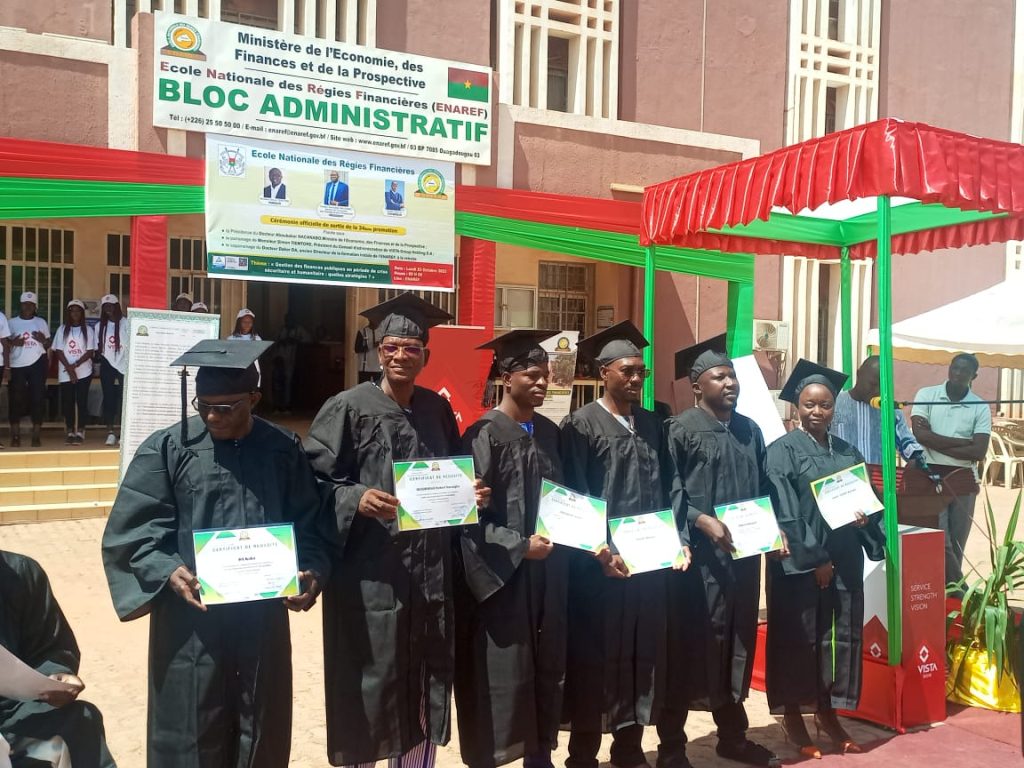 Promotion » Patriote « , ces 194 lauréats de 4 nationalités, issus de 6 filières de formation différentes sont engagés à mettre leurs compétences au service de la nation de sorte à répondre aux aspirations du moment . « Aujourd’hui notre pays est dans une phase difficile de son histoire. Les finances publiques constituent en effet un levier très important quant on parle de sécurité, de crise humanitaire et quant on parle également d’autonomie, d’indépendance de l’État. Donc sans patriotisme on ne peut pas gérer les finances publiques de façon à atteindre les objectifs que je viens de citer « , a indiqué le délégué de la promotion sortante, Jacques B Ouédraogo. D’où le thème de la présente cérémonie » gestion des finances publiques en période de crises sécuritaire et humanitaire: quelles stratégies ? ». A travers donc ce thème, ces nouveaux cadres attendent jouer leur partition à la restauration de l’intégrité territoriale.