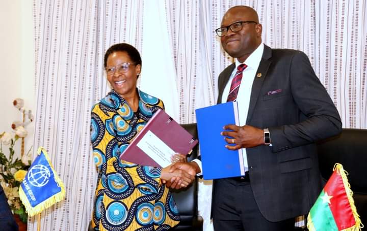 Le ministre de l’Economie, des Finances et de la Prospective Aboubakar Nacanabo et Clara Ana De Sousa, directrice des opérations de la banque mondiale pour le Burkina Faso, le Mali, le Niger et le Tchad ont signé ce 26 octobre 2023 deux accords de financement dont le montant global est estimé à 249,3 millions d’euros soit près 164 milliards de FCFA. Ce montant est destiné au financement de deux projets à savoir le projet de mobilité et de développement urbain des villes secondaires (PMDUVS) et le projet régional d’autonomisation des femmes et de dividende démographique plus(SWEED+).