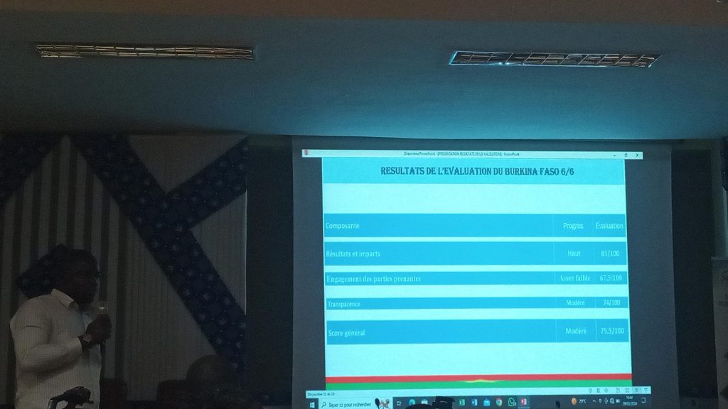 Il juge cette note satisfaisante en dépit du contexte politique et sécuritaire du Burkina Faso. Cette note est une moyenne des scores des trois composantes que sont : l’Engagement des parties prenantes à savoir le gouvernement, les entreprises, la société civile et la gouvernance du groupe multipartite, les Résultats et impacts et la Transparence.