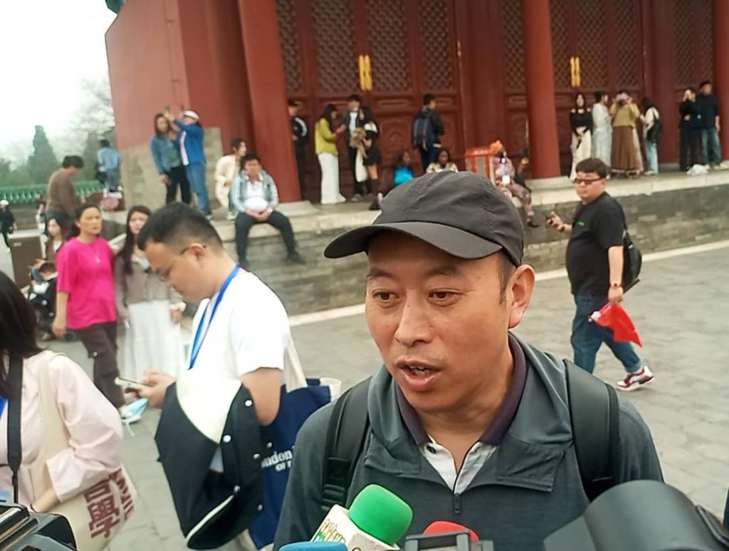 Sa voix trahit une pointe d’excitation contenue depuis des années, enfin libérée par la vue du Temple du ciel. « Son architecture est magnifique, j’aime beaucoup les temples chinois. J’aime beaucoup les couleurs et les formes», ajoute-t-il, captivé par la grandeur et la beauté des ornements qui s’étalent devant lui. Pour lui, ce n’est pas seulement une visite touristique, c’est un moment d’émerveillement et de connexion avec l’histoire et la culture millénaires de la Chine.
