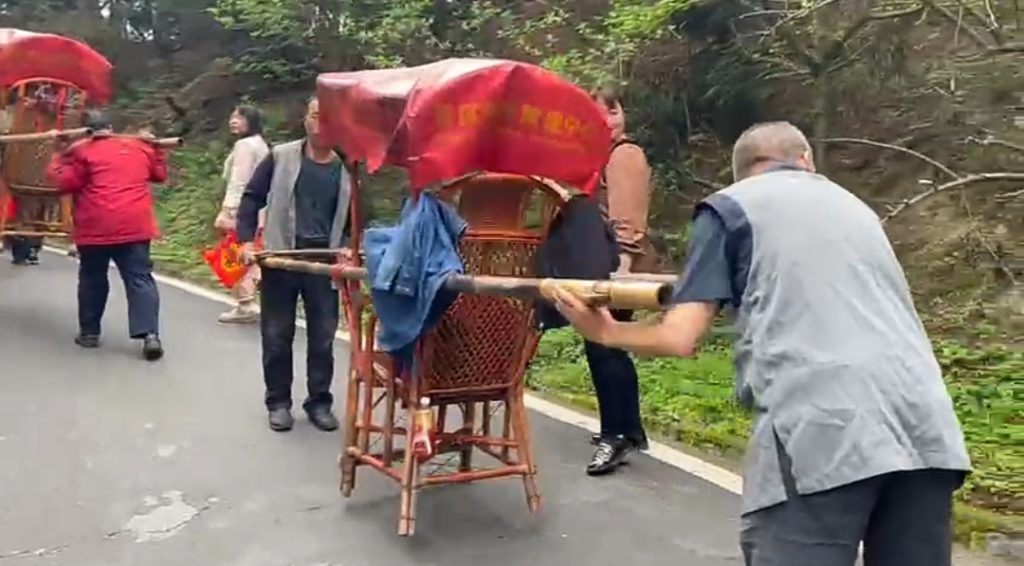 Une chose qui retient l’attention au Mont Heng est la présence de porteurs. A l’aide de deux solides bâtons qui contiennent au milieu un siège sur lequel le visiteur peut s’asseoir, des hommes âgés de plus de 40 ans offrent leurs services pour aider les visiteurs qui se sentent épuisés à gravir les pentes escarpées de la montagne.