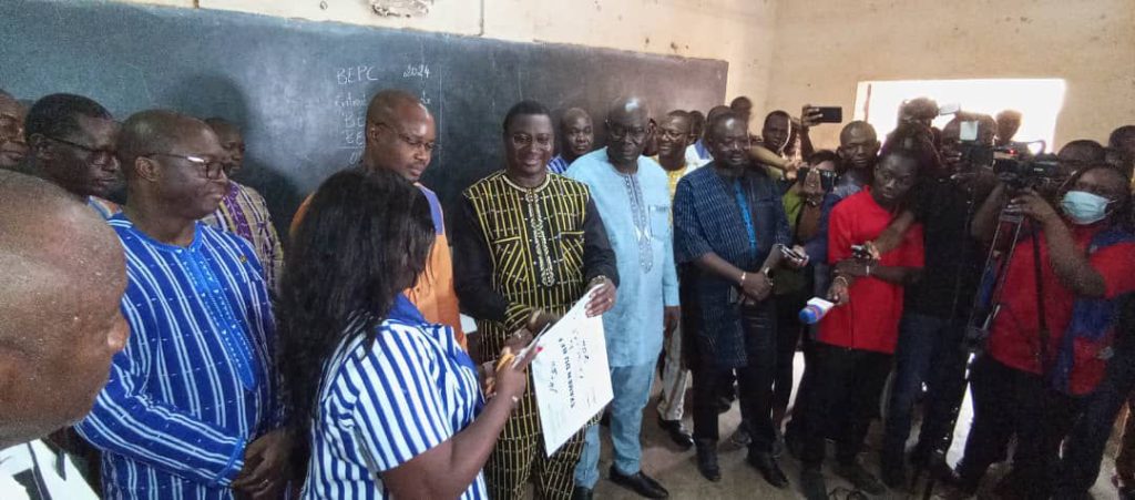 Le ministre de l’Education nationale, de l’Alphabétisation et de la Promotion des Langues nationales Jacques Sosthene Dingara a procédé au lancement des examens et scolaires 2024 au complexe scolaire sainte Anne de Kamboinsin.Il était en compagnie du ministre en charge de la communication Emmanuel Ouédraogo et d’autres autorités régionales et municipales.