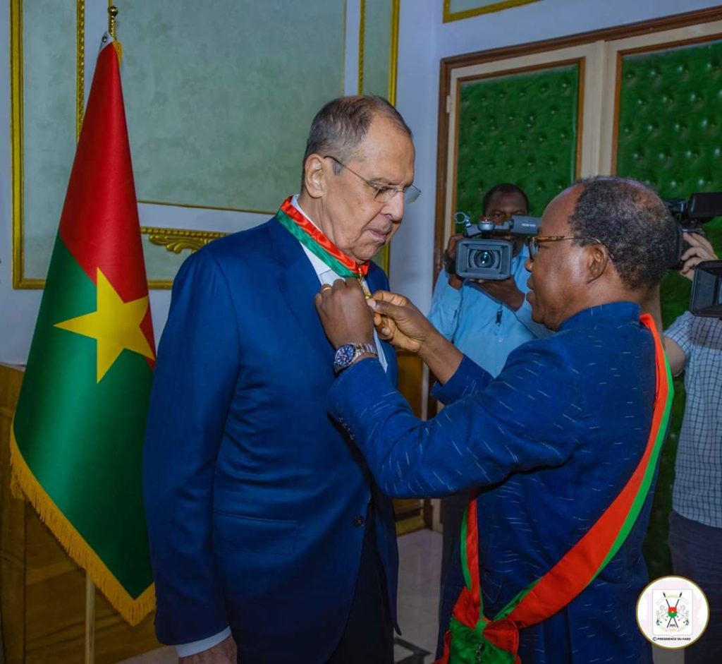Le président du Faso, le Capitaine Ibrahim Traoré a honoré la présence du ministre russe des affaires étrangères au Burkina Faso en l’élevant au rang de commandeur de l’ordre de l’Etalon ce mercredi 05 juin 2024 au palais de Koulouba.