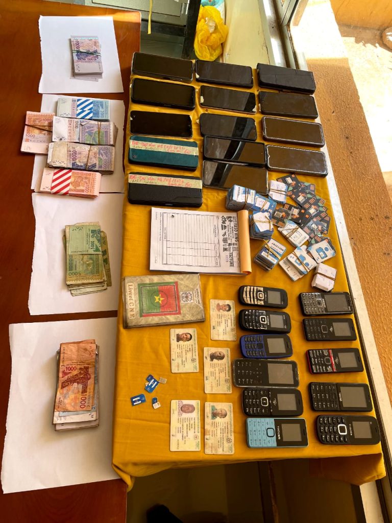 Les enquêtes, ouvertes suite à de nombreuses plaintes de victimes, ont permis de saisir trois véhicules dont deux Toyota V8 et Corolla et une Renault; trois motocyclettes dont deux Honda et une Yamaha Sirius; reize smartphones dont neuf TECNO, un Infinix, un iPhone, un Redmi et un Samsung; une boutique de vente de lubrifiants moteurs, estimée entre 50 et 70 millions de FCFA et une somme d’argent de 3 203 000 FCFA.