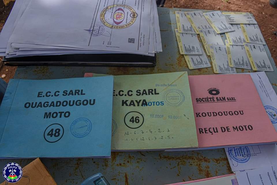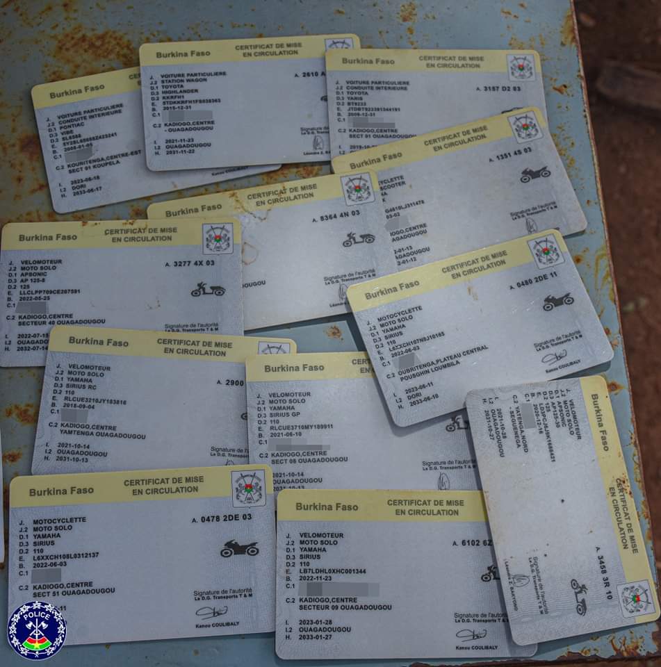 Les investigations menées par les enquêteurs ont permis de saisir deux cachets contrefaits de la douane burkinabè, une dizaine de faux Certificats de Mise en Circulation (CMC), plus d’une trentaine de faux récépissés de dépôt d’immatriculation et plus de deux cent soixante (260) fausses quittances de paiement de TVM.