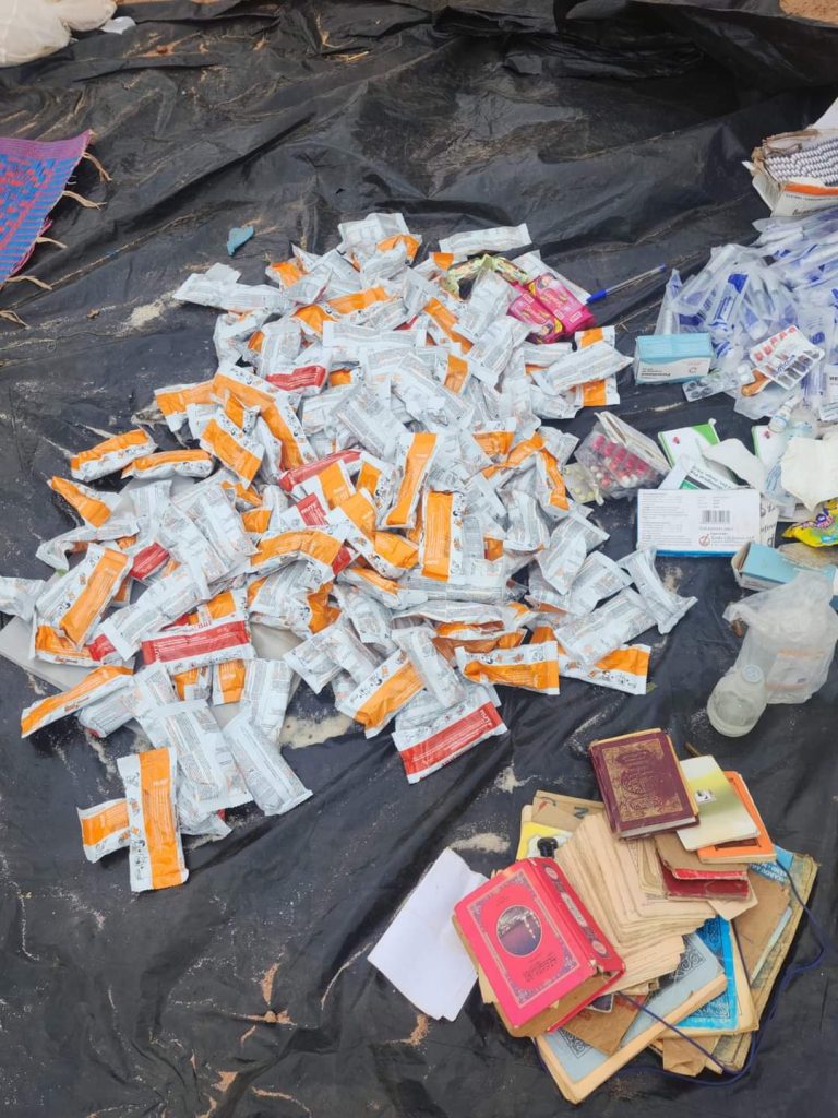On note également, des effets d’habillement militaire, des produits pharmaceutiques, de la nourriture, des téléphones portables, des chaussures et des bâches pour se protéger de la pluie et d’autres intempéries.