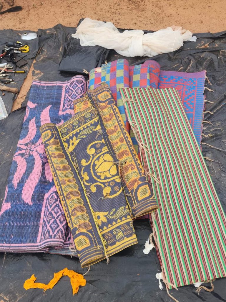Il s’agit de cinq motos, de l’armement, de rouleaux de détonateurs, des bandes de PKMS, des cartes de crédit, du matériel de couchage et du matériel mécanique.