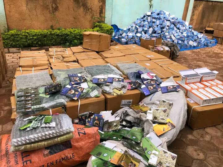 Parmi les produits saisis figurent 630 000 plaquettes de Cold Tablets, 195 000 plaquettes de Norfloxacin, 30 000 plaquettes de Paracétamol, ainsi que 36 000 plaquettes de viagra King Night. Les médicaments étaient transportés dans des véhicules de personnes transformés en camions de marchandises.
