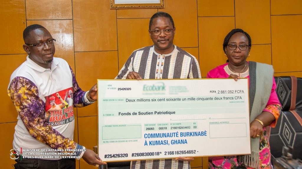 Par ailleurs, l’association des Burkinabè de Kumasi au Ghana a renouvelé son soutien avec une contribution de 2 millions 661 025 FCFA. La communauté burkinabè de Lagos, au Nigeria, a également pris part à cette dynamique, en apportant un soutien financier de 2 millions 275 000 FCFA. Des contributions notables ont également été enregistrées du Royaume-Uni et du Koweït, avec respectivement 1 million 500 000 FCFA et 1 million de FCFA, pour soutenir la lutte contre le terrorisme. Enfin, les ressortissants burkinabè du Tchad ont apporté un don de 2 millions FCFA, tandis que l’association Sambiri des fonctionnaires burkinabè de la CEDEAO a mobilisé 6 millions FCFA.