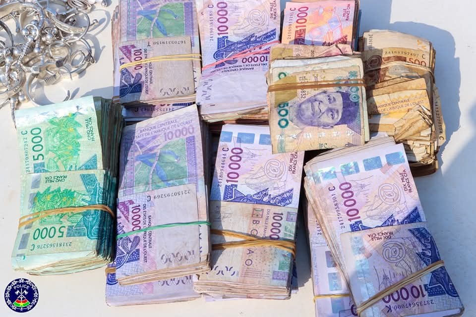 Grâce à l’intervention des forces de l’ordre, ces malfaiteurs ont été interpellés alors qu’ils tentaient de fuir vers leur pays d’origine. L’opération menée par la Police de Fada N’Gourma a permis de saisir en leur possession une importante somme d’argent, des bijoux en or et en argent, de l’or ainsi que du matériel servant à percer des murs.