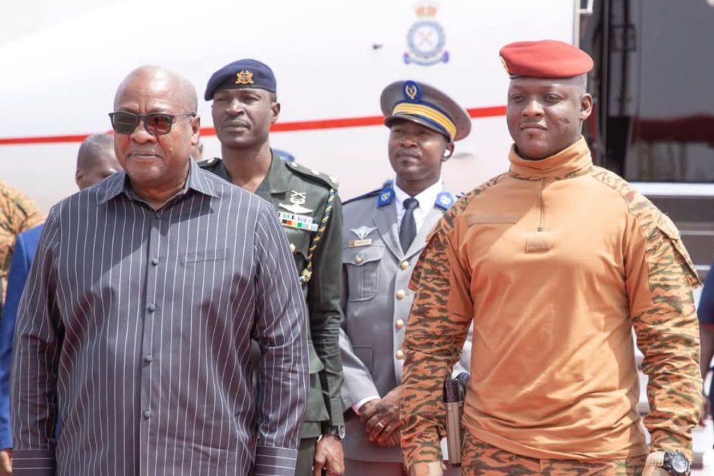 Le Président de la République du Ghana, John Dramani Mahama, est arrivé ce lundi matin à Ouagadougou pour une visite de travail au Burkina Faso. Il a été accueilli à l’aéroport international de Ouagadougou par le Président du Faso, le Capitaine Ibrahim Traoré.