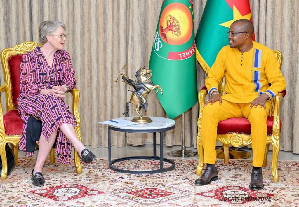 Le Premier ministre, Rimtalba Jean Emmanuel Ouédraogo, a reçu en audience ce 28 avril 2025 la Représentante spéciale du Danemark pour les Grands Lacs et le Sahel, Nygaard Markussen. Accompagnée de l’actuel ambassadeur du Danemark au Burkina Faso, Kristian Kirkegaard Edinger, la diplomate danoise a abordé avec le Chef du Gouvernement les perspectives de renforcement de la coopération bilatérale.