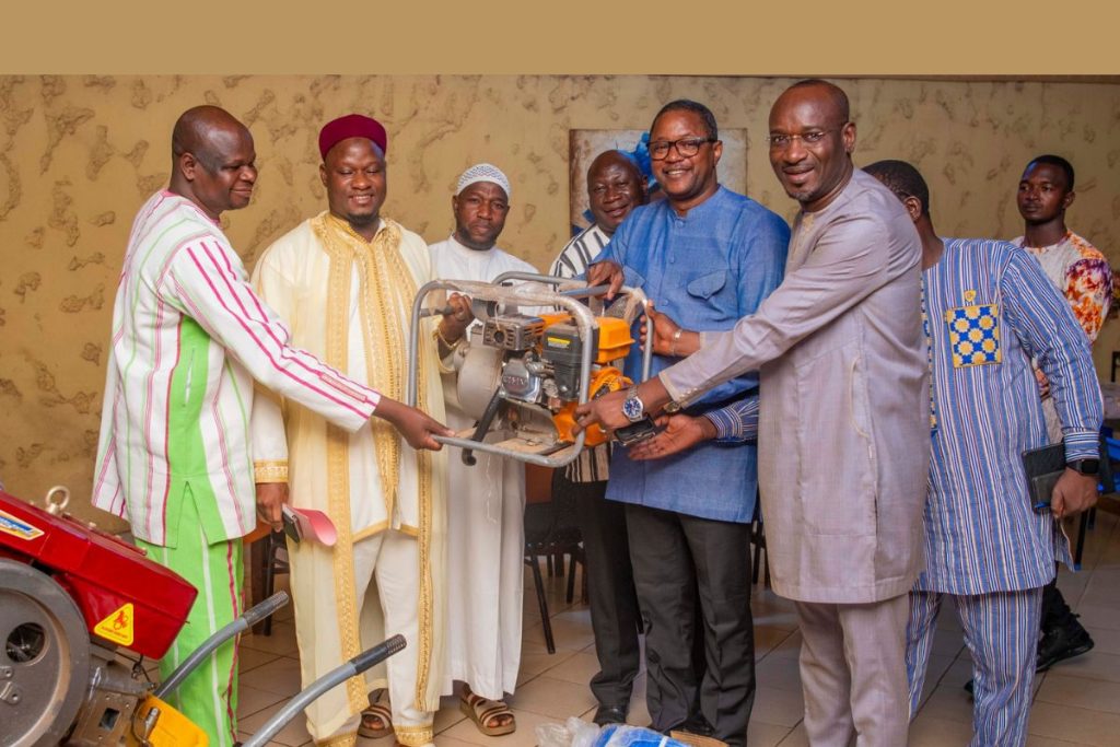 Ce don d’une valeur totale de 8,5 millions de FCFA, se compose de deux volets principaux : un lot de matériel agricole incluant notamment des motopompes, évalué à plus de 8 millions de FCFA, destiné à appuyer l’initiative présidentielle pour le développement agricole et à venir en aide aux personnes déplacées internes. Le deuxième don est un apport financier de 500 000 FCFA alloué au Fonds de Soutien patriotique.