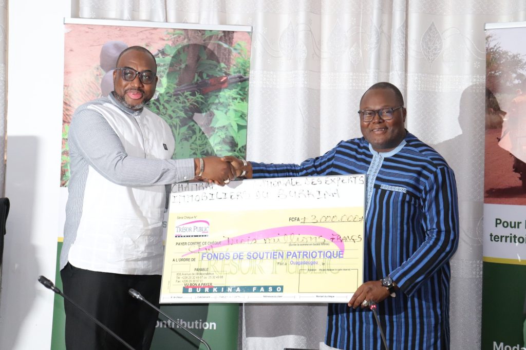 Parmi les donateurs figurent l’Association Zemstaba pour le Développement Local (AZDEL) avec 1 000 000 FCFA, l’Association Jeunesse Engagée pour le Faso (250 000 FCFA), l’Association Burkinabè des Sages-femmes et Maïeuticiens (500 000 FCFA), la Chambre Internationale des Experts Immobiliers du Burkina (3 000 000 FCFA), l’Assistance Internationale « Mère et Enfant » (AIME) (300 000 FCFA) et l’Ordre des ingénieurs en génie civil (5 000 000 FCFA).