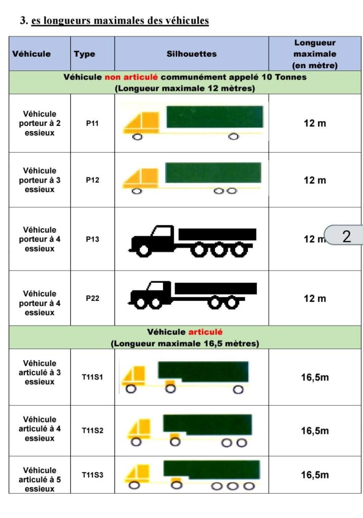 Des tableaux de référence ont été joints en annexe pour clarifier les gabarits autorisés.